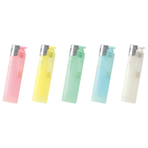 半透明の本体に爽やかなカラーが人気の「パステルESライター」こちらの商品は軽いタッチで着火が出来るタイプで本体もクリアなので爽やかなイメージで夏におすすめのライターです。